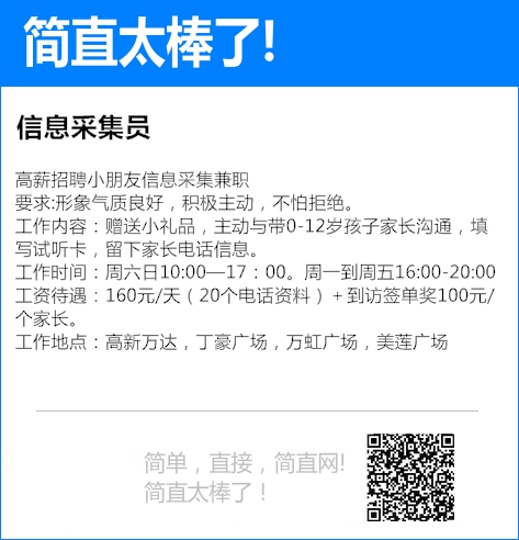 高薪招聘小朋友信息采集兼职